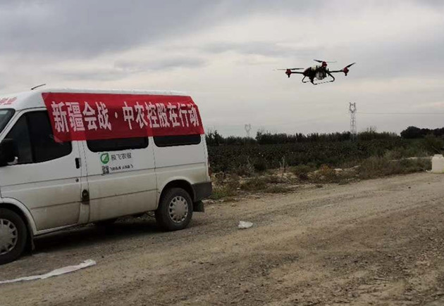 “中國農資”現代農業服務中心植保無人機參與新疆“秋收起翼”活動