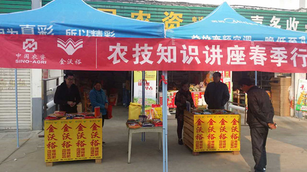 ??? 3月18日,中農控股旗下湖北沃裕公司的肥料品牌——“金沃?!痹诤崩渌傞_展春耕知識講座及訂肥優惠送禮活動。此次活動由冷水鎮“金沃?!钡闹变N商便民農資公司籌辦。