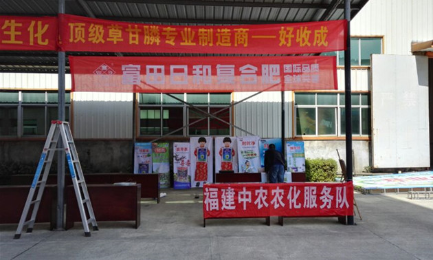 ??? 活動當天,福建中農農化隊員在醒目的位置掛出多條橫幅,發放宣傳資料,介紹主要經營的化肥產品,分析作物需肥特性,講解植物缺素癥狀,推廣科學施肥方案。