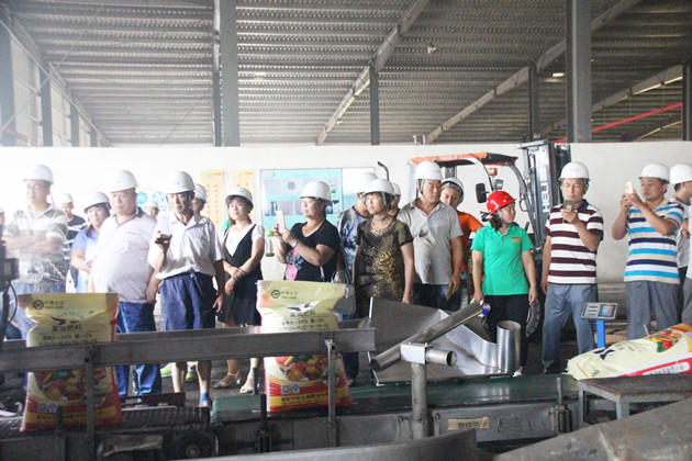 ? ? 7月17日下午,河北武邑40多位經銷商來到新樂中農金瑞肥業有限公司(下稱新樂中農)進行實地參觀考察。參觀人員深入廠區,參觀了新樂中農的成品庫房、投料、生產、包裝的各個環節,在實地參觀中真正感受到新樂中農的實力。