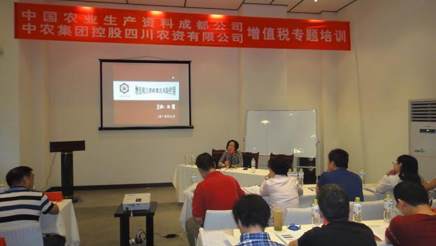 ? ? 9月9日-10日,為適應(yīng)化肥恢復(fù)征收增值稅,中農(nóng)集團控股四川農(nóng)資有限公司(下稱四川中農(nóng))在公司本部舉辦了增值稅專題培訓(xùn),公司領(lǐng)導(dǎo)班子,各業(yè)務(wù)部門、各子公司和各分支機構(gòu)負責(zé)人、財務(wù)人員及業(yè)務(wù)內(nèi)勤人員參加了培訓(xùn)。