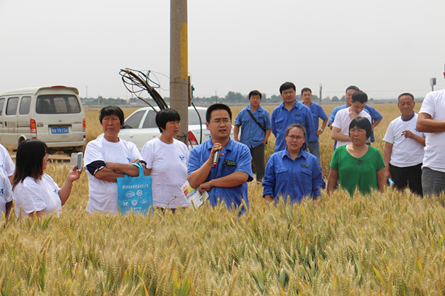 ? ? 與會人員首先來到新樂中農農業技術推廣示范點,觀摩了小麥施用“欣碩”FA因子功能肥料情況。隨后,新樂中農召開了新肥料示范推廣現場培訓會,介紹了“欣碩”FA因子功能肥料的功效及施用方法,重點推介了“欣碩”FA因子功能型肥料促進根系生長,增加作物的抗逆性能、抗寒力、抗干熱風以及抗病蟲害等多方面的突出功效。河北省農科院小麥專家楊立華說:“今年全國的小麥赤霉病比較嚴重,而施用FA因子肥料的小麥,幾乎沒有赤霉病,這說明FA肥料有很好的抗病效果,這也為高產打下了基礎,也是增產的保證?!庇^摩會現場,使用“欣碩”FA因子功能型肥料的種植戶向前來觀摩的參會人員講述了施用“欣碩”FA因子功能肥料過程中的注意事項,分享了種植管理過程中的施肥經驗。期間,大家互動頻繁,氣氛熱烈,顯示出對新樂中農技術與產品的極大認可。