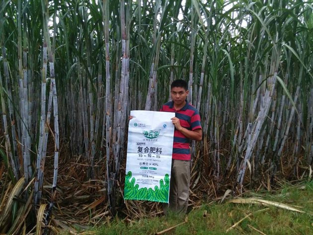 ? ? 回訪期間,公司“海元寶”海藻肥的當地合作經銷商,武宣縣地來福農資公司總經理江先育信心滿滿的告訴公司農化人員說:“中農控股‘海元寶’海藻肥在提高甘蔗產量和糖分方面作用很大,我們明年一定會大力宣傳和推廣,讓更多的農戶增產增收。”