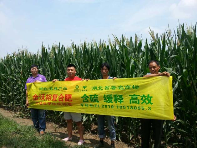 ? ? 為什么“金沃裕”復合肥具有如此好的抗旱效果?據回訪隨行的湖北沃裕銷售經理介紹,湖北沃裕生產的“金沃裕”復合肥采用了國家領先的自主發明專利“高塔脲甲醛緩釋肥”技術。脲甲醛緩釋肥施入土壤后,能夠快速融化為膠體,并被土壤緊密吸附融合,從而保證養分長效不流失。同時脲甲醛包裹的樹脂膠體也可以吸收土壤中的水分,在土壤干旱的情況下,緩慢釋放給予水分回補,為作物生長提供必需條件。試驗數據顯示,該肥料的這種抗逆性在玉米、大豆、油菜、花生上表現出來的效果極為明顯。據了解,湖北沃裕為此正在考慮如何依托中農控股的渠道優勢,進一步加快“金沃裕”復合肥的市場開發進程,加大產品的市場投放規模,以便在全力打造“拳頭”產品的同時,能夠讓更多地區、更多農民選擇并用上“金沃裕”復合肥。