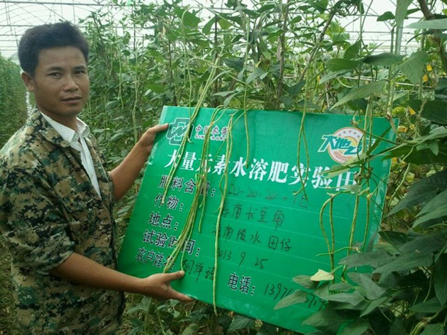 ? ? 農(nóng)化服務(wù)團(tuán)隊(duì)先后來(lái)到海南瓊海、萬(wàn)寧、陵水、三亞、樂(lè)東等示范基地,對(duì)“大地之秀”大量元素水溶肥的施用效果進(jìn)行全面檢驗(yàn)。調(diào)查結(jié)果顯示,“大地之秀”大量元素水溶肥在帝王蕉、芒果等熱帶水果及長(zhǎng)豆角、朝天椒等當(dāng)?shù)厥卟说呐嘤暇〉昧肆己玫氖痉缎Ч啾绕胀ǚ柿?,增產(chǎn)極為明顯,特別是“大地之秀”大量元素水溶肥均衡生長(zhǎng)型和高鉀膨果型兩種配方肥料,在海南當(dāng)?shù)氐玫綇V大農(nóng)民朋友的一致認(rèn)可,為公司農(nóng)化服務(wù)團(tuán)隊(duì)后續(xù)工作的深入開(kāi)展奠定了良好基礎(chǔ)。
