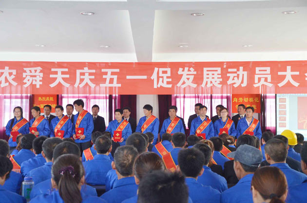 ? ???5月4日,中農控股旗下中農舜天生態肥業有限公司(簡稱“中農舜天”)在中農舜天科技園舉行了以“慶五一?促發展”為主題的表彰會,對在生產經營中做出突出成績的先進個人給予表彰。中農舜天總經理李日升、公司領導班子及先進個人代表共300余人參加了此次表彰大會。