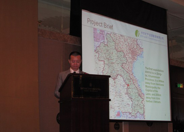 ??? 2010年11月8日至10日,中農控股股份有限公司副總經理王全帶團參加在越南河內舉辦的國際化肥協會亞太分會。??? 本屆會議是在當前世界糧食供應緊張和價格上漲、全球化肥市場持續走高的背景下召開的,來自全球的化肥生產商和貿易商以及化肥行業媒體等參加會議。??? 會議期間,受大會組委會邀請,王全副總經理在會上做了關于中農公司在老撾鉀礦投資項目的進展報告,贏得了很多參會代表的關注,有效地提升了中農公司在國際化肥界的形象和地位。??? 圖為王全副總經理在會上做關于中農公司在老撾鉀礦投資項目的進展報告。